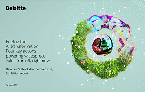 The Deloitte AI Institute’s fifth edition of the “State of AI in the Enterprise” survey, conducted between April and May 2022, provides organizations with a roadmap to navigate lagging AI outcomes. Twenty-nine percent more respondents surveyed classify as underachievers this year, yet 79% of respondents say they’ve fully deployed three or more types of AI. It is clear despite rapid advancement in the AI market that organizations are struggling to turn implementation into scalable transformation. This year’s report digs deeper into the actions that lead to successful outcomes — providing leaders with a guide to overcome roadblocks and drive business results with AI.