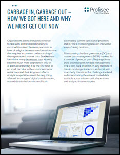 This whitepaper, “Garbage in, Garbage Out – How We Got Here and Why We Must Get Out Now,” from our friends over at Profisee, reflects on why the state of data in most organizations is as dismal as it is, and why there is such a challenge involved in demonstrating the value of trusted data available across mission-critical operations and analytics in an enterprise.