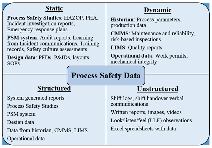 Process safety data is locked in many different sources and are a combination of structured, unstructured, static, and dynamic information. Pankaj et al, provide the following overview in this – Figure 1. When we look at this overview, it is easy to see the various attributes for BIG data, also called the 7 V’s.