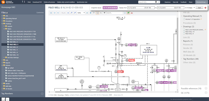 Software solutions exist that analyze the underlying data sources and find hidden patterns that allow the linking of information in ways usually not available. Utilizing complex document extraction methods, combined with pattern matching and machine learning, the software can utilize all data sources in order to link to the data. When a facility operator opens a document, he has immediate visibility into the historic data, referenced equipment manuals, current and historic work orders and much more, see Figure 3.