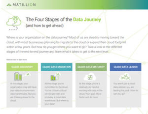 within a few years. But how do you get where you want to go? In this new whitepaper, our friends over at Matillion, the cloud-native platform for all your data integration, take a look at the different stages of the end-to-end journey and learn what it takes to get to the next level: