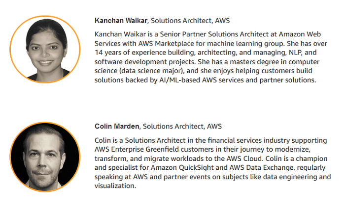 You will also hear from Demyst on how AWS customers can leverage the Demyst Platform to curate, test, and consume external data solutions customized for the financial services industry. Learn how to leverage financial services data sets in AWS services and begin the next phase of your company’s digital transformation to support its future growth and success.