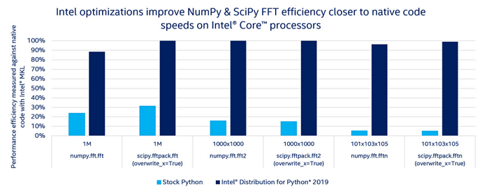 David Liu: In the case of NumPy and SciPy, there are a number of important optimizations for scientific functions. The biggest one is transcendental functions, which is where many of the big vectorization capabilities come through. We’ve done a lot of optimization of numpy.dot (), FFTs, Lower/Upper Decomposition (LU), and QR factorization. And we did some optimization on memory management and vectorization engine management to get the majority of the calls to work.