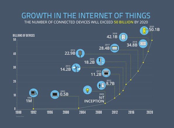 The Internet of Things (IoT) is a term used to describe the set of physical objects embedded with sensors and connected to the Internet. IoT offers numerous opportunities for the Federal Government to cut costs and improve citizen services. The data visualization “Growth in the Internet of Things” (below) shows the tremendous growth in the number of connected devices across all sectors.