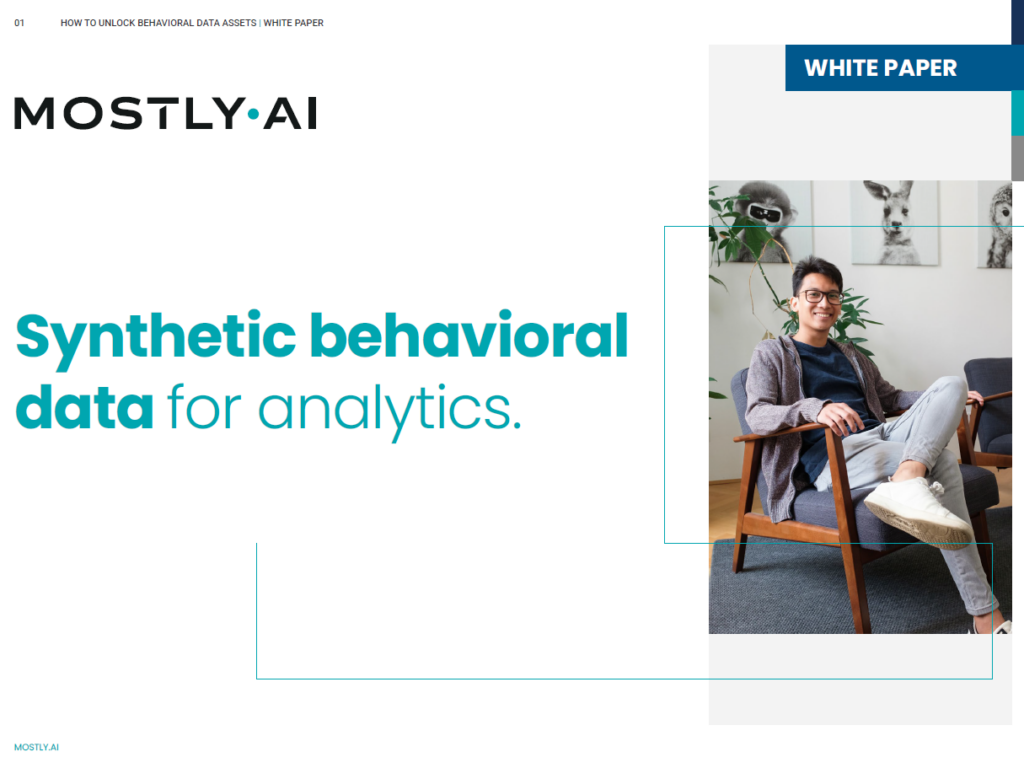 In this compelling white paper, “Synthetic Behavioral Data for Analytics,” MOSTLY AI makes the case for Synthetic Behavioral Data. MOSTLY AI is the leading synthetic data company globally. Its platform enables enterprises across industries to unlock, share, fix and simulate data.