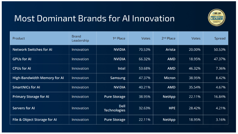 IT Pros Vote in Inaugural Brand Leader Survey Covering Enterprise Infrastructure for AI
