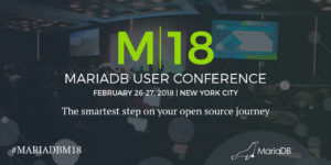 Registration for the next MariaDB user conference, M|18, is now open! Join us February 26-27 in New York City to learn directly from MariaDB experts on topics ranging from use cases to deep tech – security enhancements, performance tuning, cloud and container deployments, microservices, high availability optimizations and more. Choose from four workshops on high availability, security, performance tuning and high performance analytics. Test your MariaDB knowledge with our certification exam. Network with old colleagues and meet new contacts during the welcome reception.