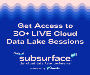 Featuring 30+ technical sessions, the cloud data lake conference Subsurface LIVE is coming up Jan. 27-28, 2021! Learn how companies like Netflix, AWS, Adobe, Microsoft and USAA already utilize cloud data lakes at scale. Find out how to use open-source technologies to innovate your own modern cloud data lake—straight from the creators and contributors of Apache Iceberg, Amundsen, InfluxDB IOx, Apache Parquet and more. And learn real-world use cases and best practices for pairing data warehousing, BI, data science, advanced analytics and other complementary technologies with your cloud data lake.